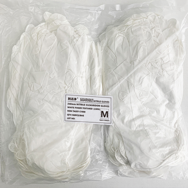 利潔凈9寸千級(jí)凈化指麻白色丁腈手套