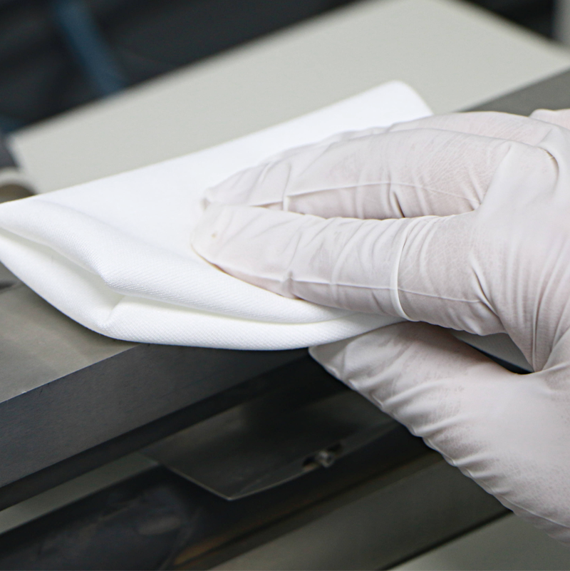 - 無塵布由100%聚酯纖維雙編織而成,表面柔軟,易于擦拭敏感表面,摩擦不脫纖維,具有良好的吸水性及清潔效率。產(chǎn)品的清洗和包裝均在超凈車間完成。