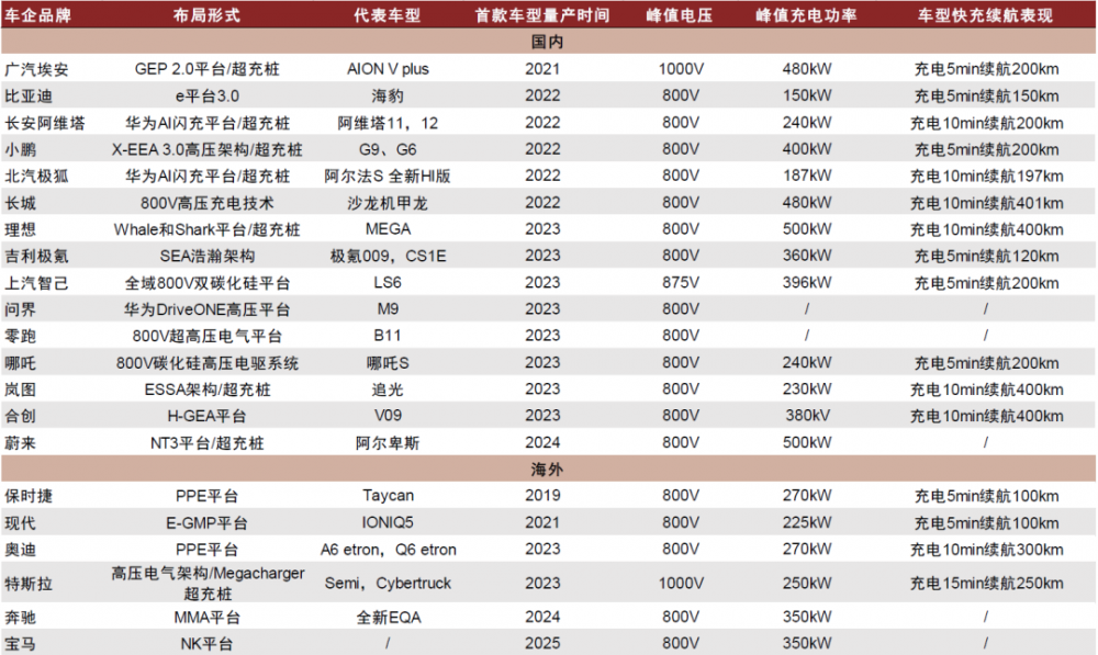 圖表4:國(guó)內(nèi)外車企加速布局高壓快充