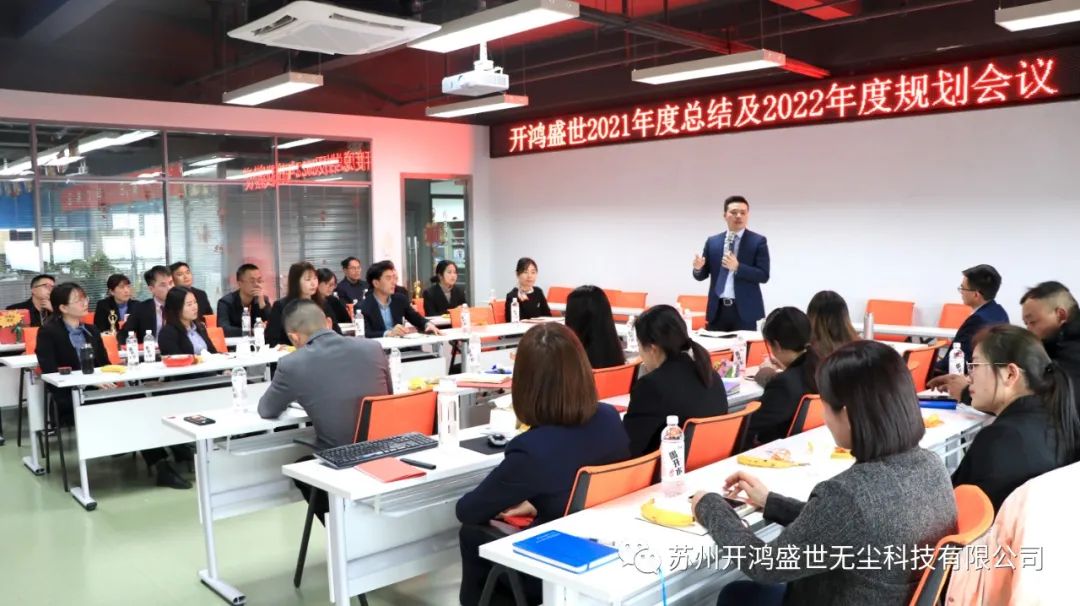 0512-577928152022年1月21日,蘇州開鴻盛世無塵科技有限公司2022年年終總結(jié)大會(huì)在美客居產(chǎn)業(yè)園8樓召開。開鴻盛世各部門主管對2021年工作總結(jié)及2022年工作規(guī)劃進(jìn)行全面匯報(bào)。